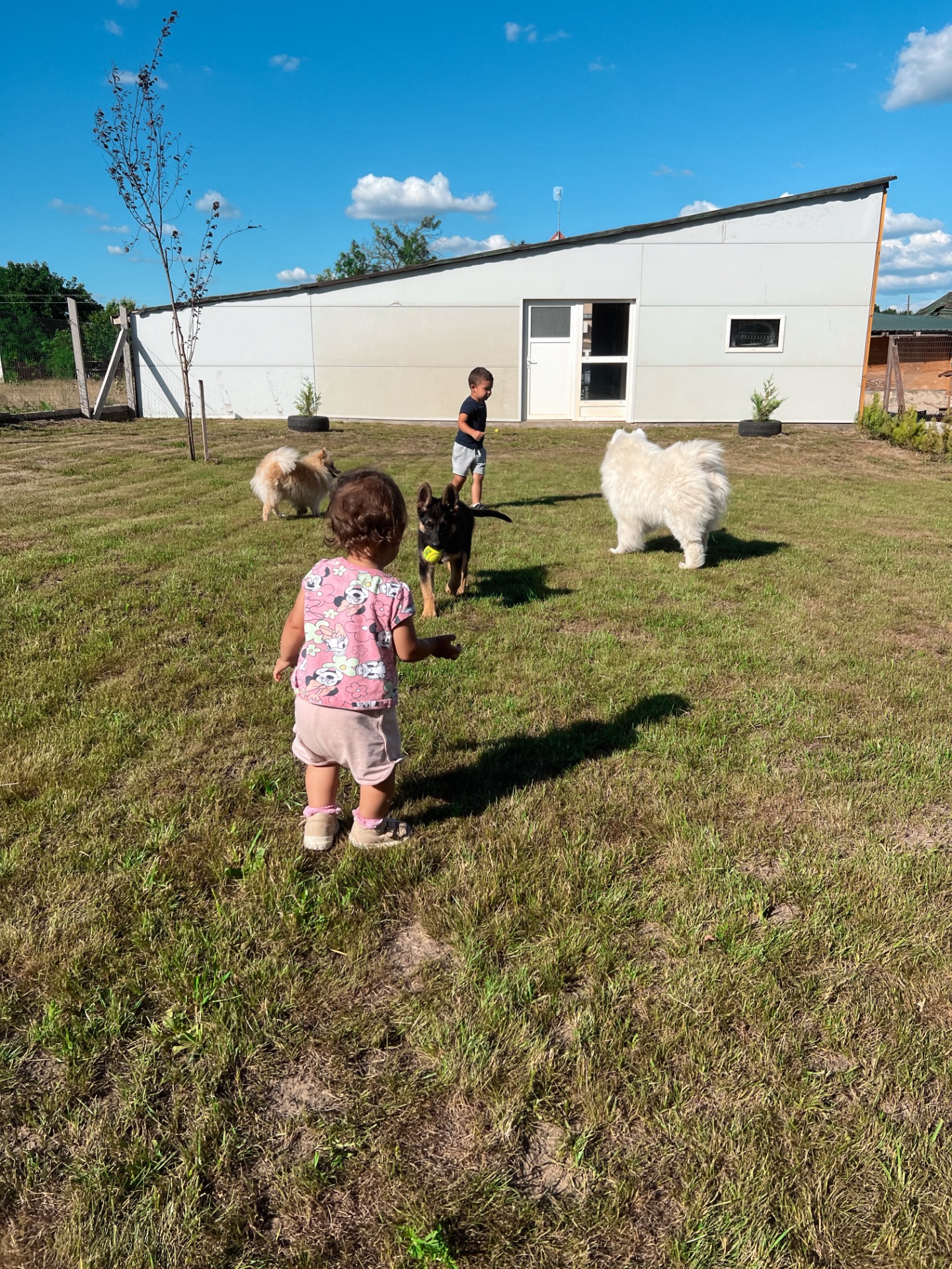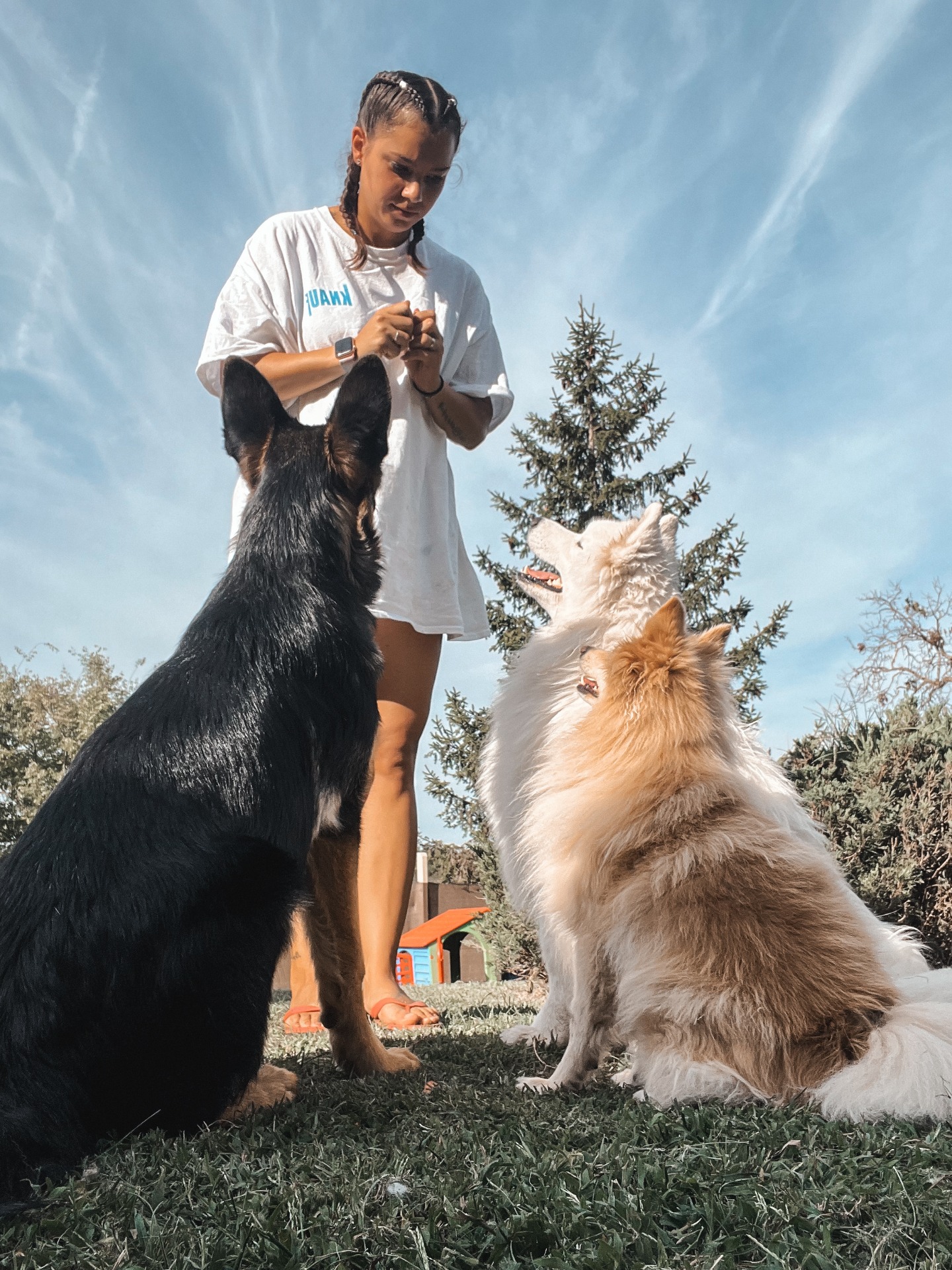 Brigi vagyok, 2 kisgyermek anyukája, és 3 kutyus, illetve 2 cica gazdija. Az első kutyámat 2017-ben vásároltam(Spitz keverék kutyus), a másodikat 2018-ban(Samoyed), majd egy házörző németjuhásszal bővült a csapatunk 2024-ben. A kis spitzemmel az agility sportágban találtuk meg igazán magunkat. Elég szép eredményeket értünk el, ami egy igazán élvezetes időszak volt a számunkra. Már akkor tudtam, hogy én kutyákkal szeretnék foglalkozni, hiszen gyerekkoromban is Spánielekkel nőttem fel. Így 2024-ben elvégeztem a Kutyakiképzői Tanfolyamot, illetve a Németjuhászommal is rendszeresen járunk iskolába, és itthon is napi szinten kapják a kutyák a kiképzést.